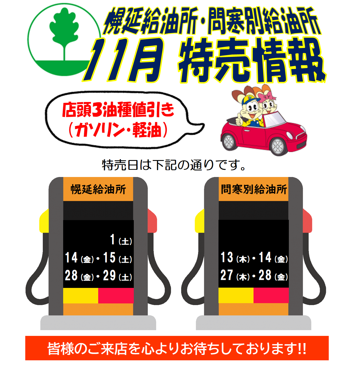 11月 給油所特売情報!